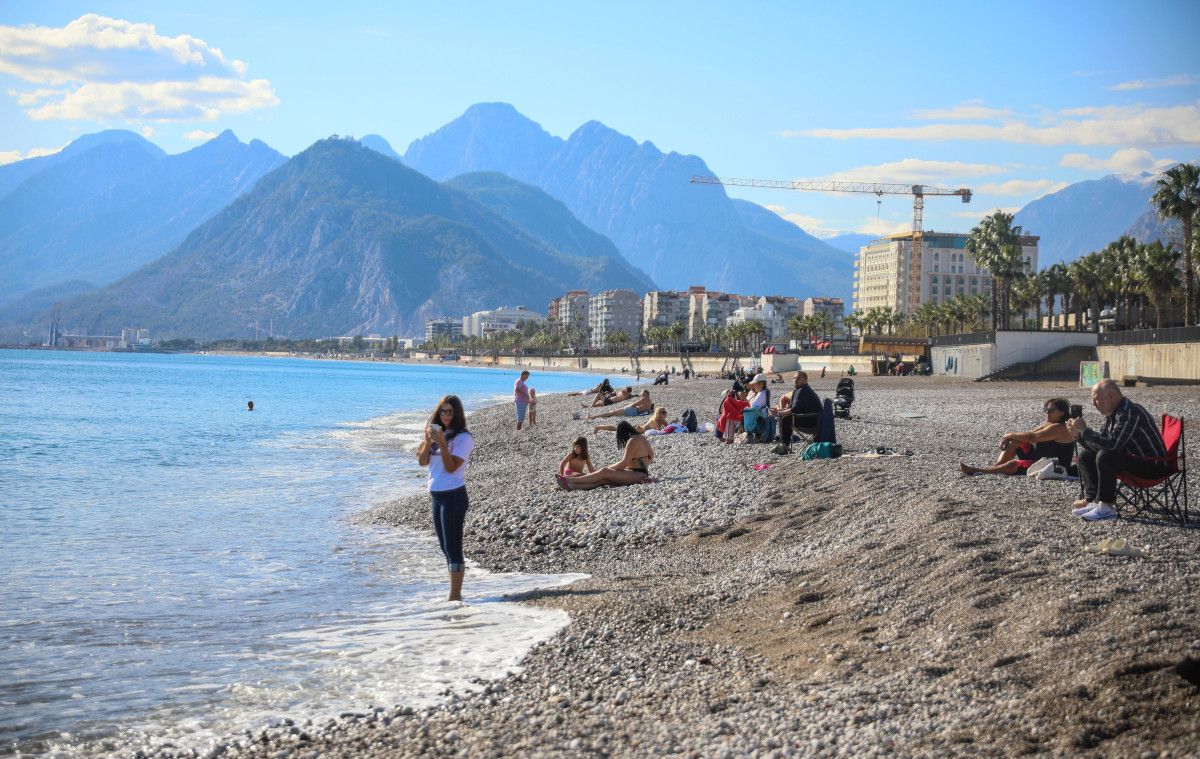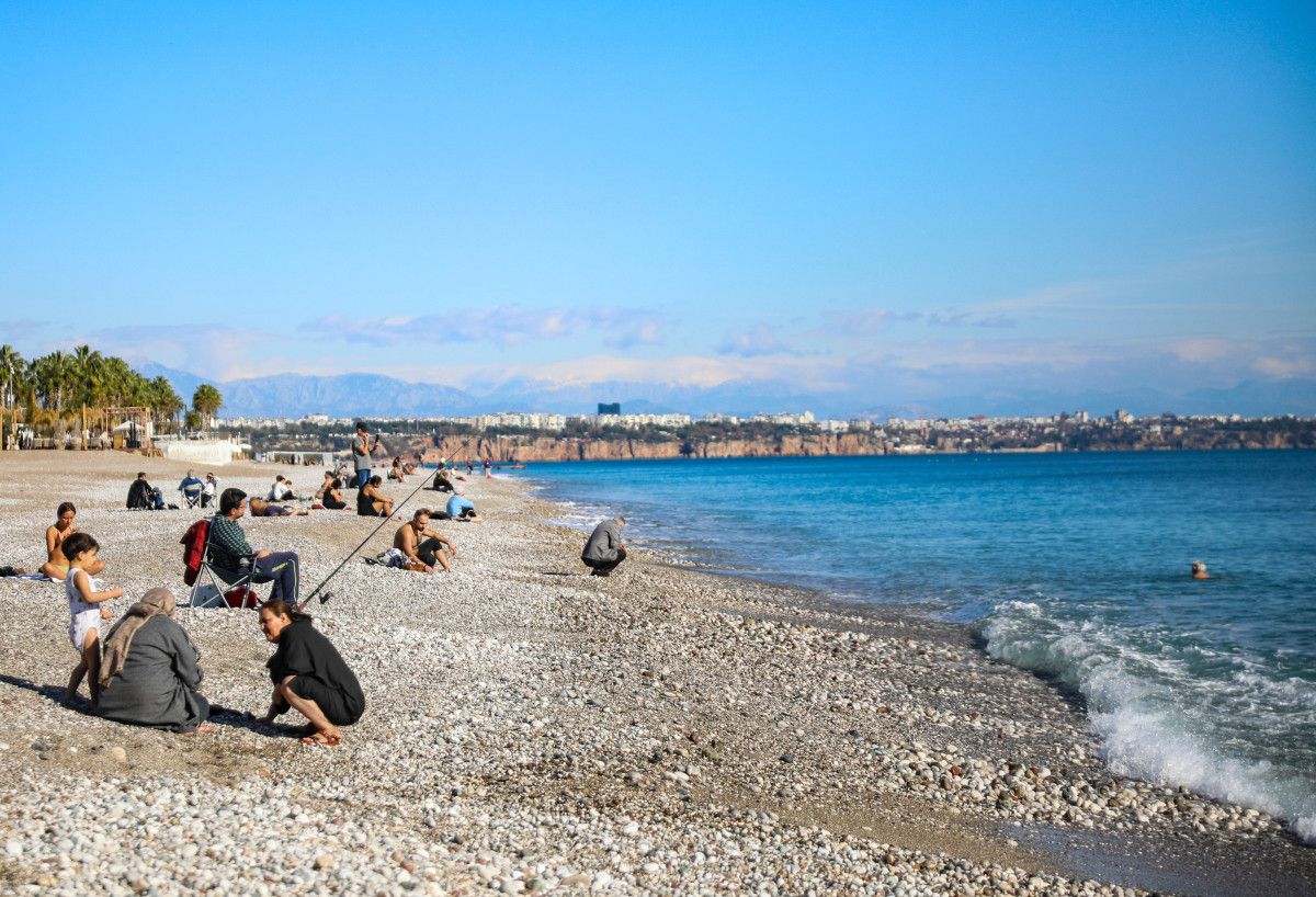Hava sıcaklığının 22 dereceyi gördüğü kentte yaşayanlar, güneşli havayı görünce Konyaaltı Sahili’ne geldi.