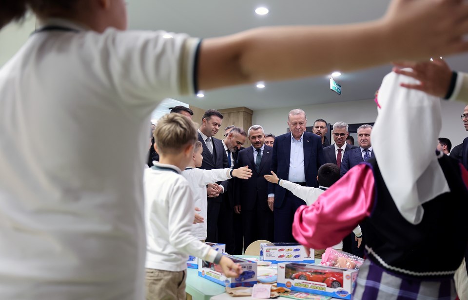 Cumhurbaşkanı Erdoğan, kendisini karşılayan çocuklarla sohbet ederek hediye verdi. “İSRAİL ATTIĞI İMZANIN ARKASINDA DURMALI”