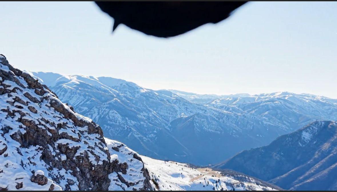 Ovacık ilçesindeki karla kaplı 3 bin rakımlı Sultan Baba Dağı’nda kenttin tanıtımı için dronla görüntü çeken Tunceli Müzesi arkeoloğu Özgür Şahin’in dronu, havada süzülen kartalın ilgisini çekti.