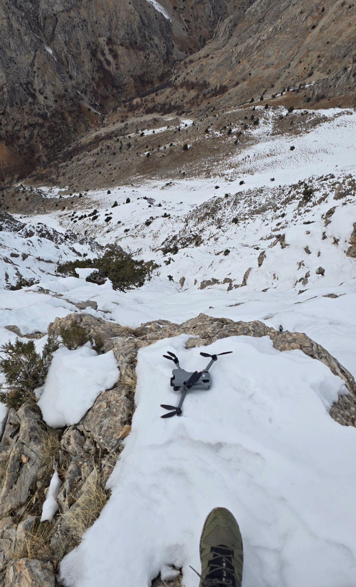 Dronuna ulaşamayan Şahin, durumu ve konum bilgisini profesyonel dağcı ekibine bildirdi. Yaklaşık 6 saat süren tırmanışın ardından ekip, zarar görmeyen dronu bularak sahiplerine teslim etti.