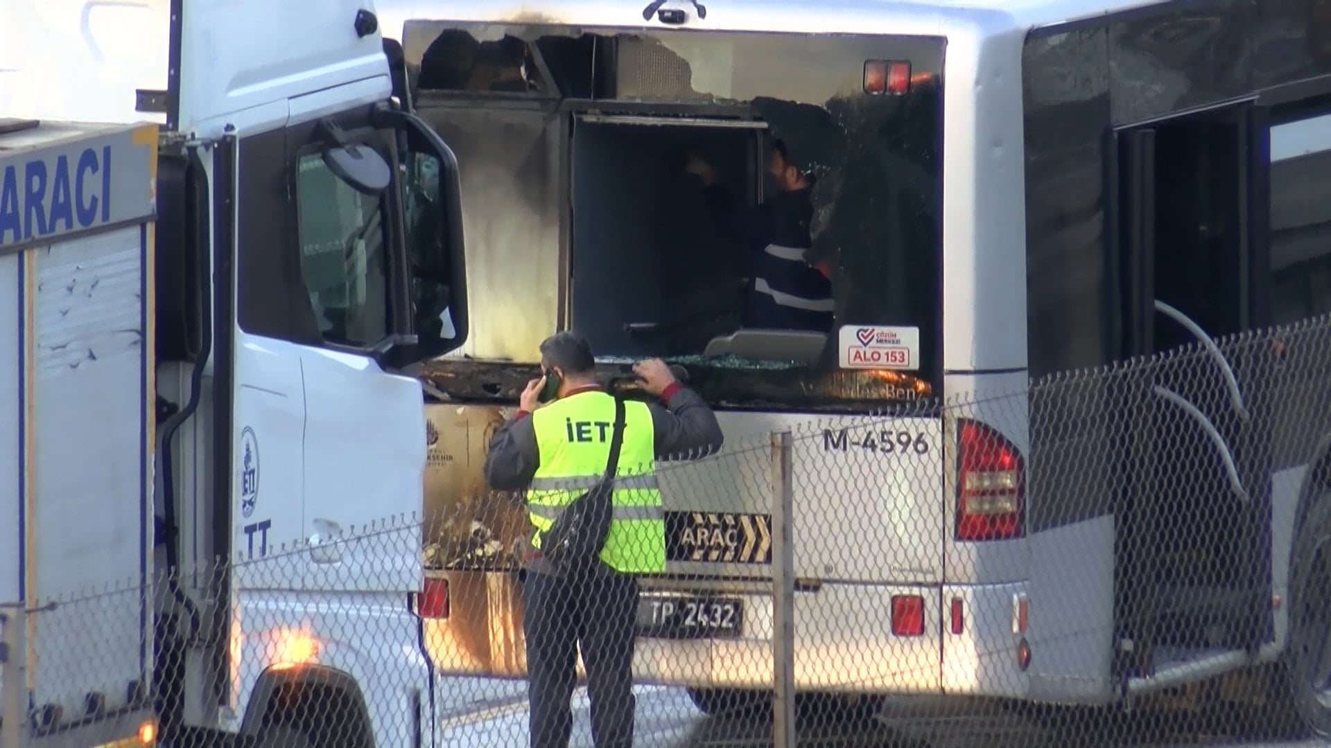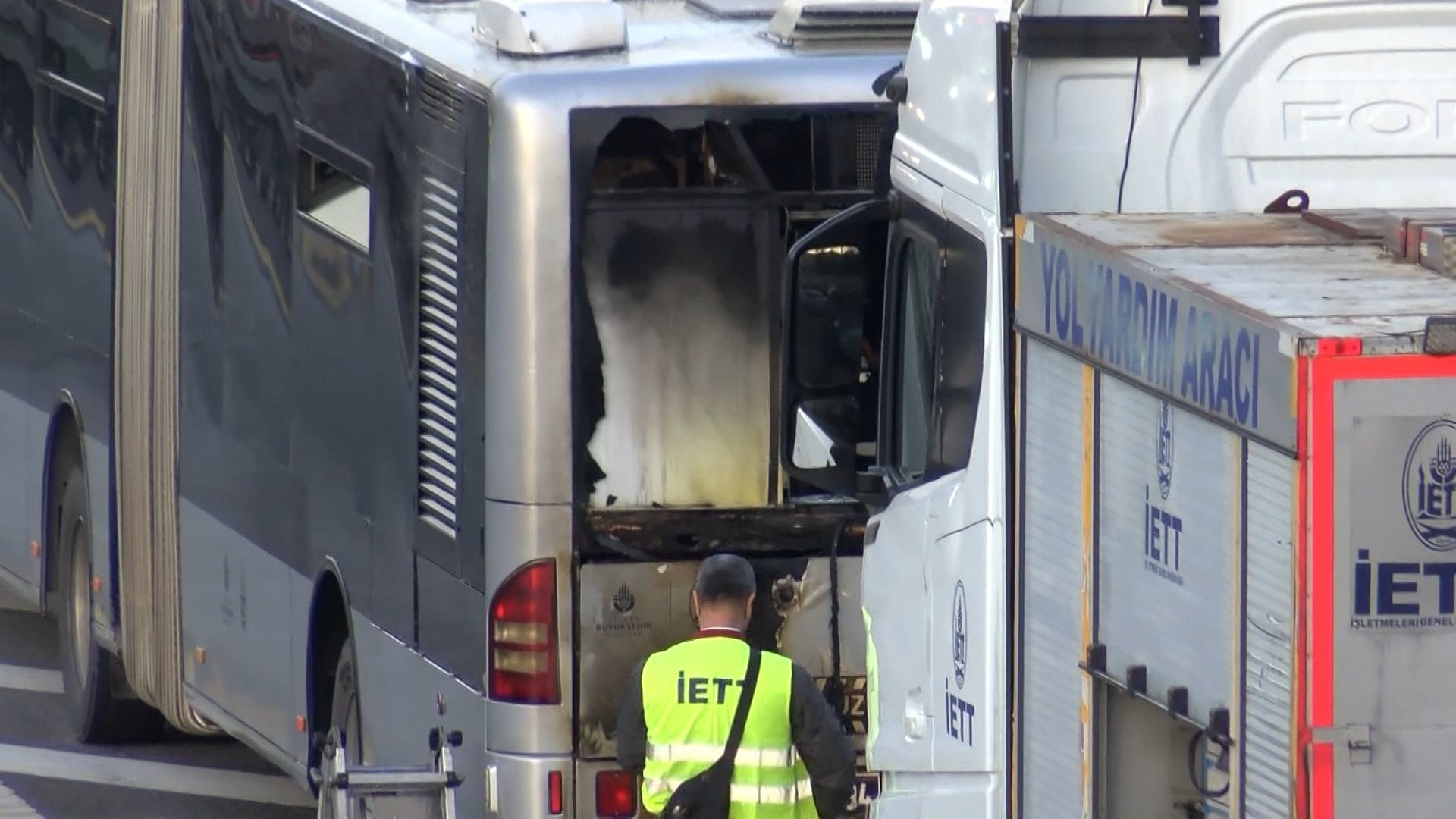 Metrobüsün motor kısmının alevli yanması cep telefonu kamerasına yansırken seferlerde aksama yaşanmadı.